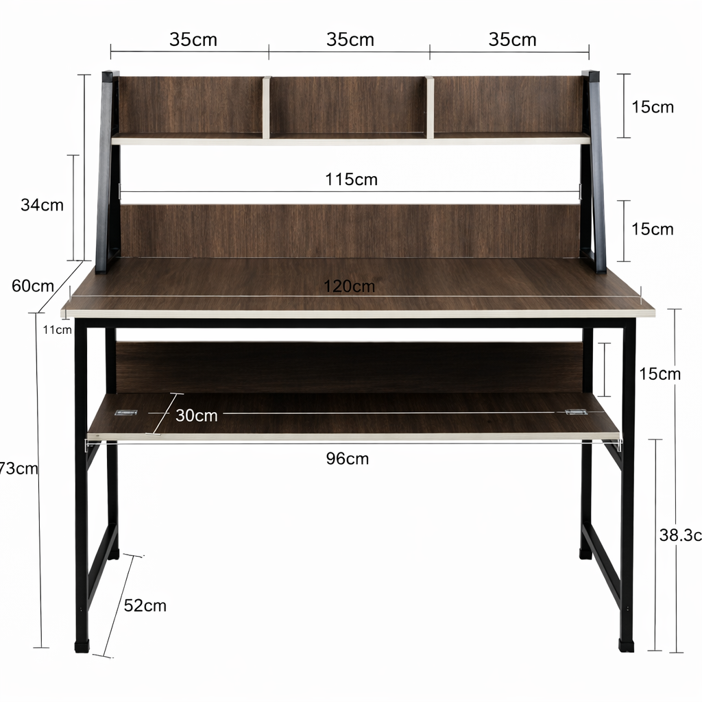 A perfect blend of style and functionality, this modern home desk enhances any study area, living room, or home office. Its light, open design offers generous workspace along with smart storage, featuring three open cubbies on top and an open shelf below. Crafted from sturdy MDF boards with a strong metal frame, it provides everyday durability while maintaining a warm, contemporary look. Adjustable foot pads ensure stability on any surface