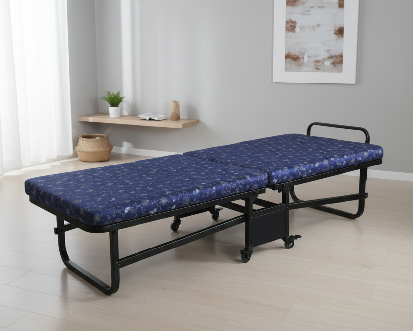 MS Folding Bed with Cushions is a practical sleeping solution that folds away for easy storage. Features a sturdy metal frame with comfortable cushioned padding for restful sleep. Perfect for guest rooms, dorms, or compact living spaces. Lightweight and portable, it sets up quickly without tools. The included cushions provide extra comfort and support. Ideal for anyone needing flexible, space-saving furniture.