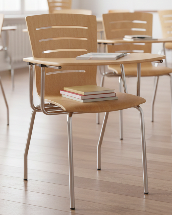 The Student Chair with Writing Tablet SC 206 combines durability with functionality. Built with a sturdy stainless steel frame and comfortable plywood seat and back, it's designed for extended study sessions. The integrated full plywood writing pad provides a convenient work surface, making it ideal for classrooms, libraries, and study spaces. Lightweight yet stable, this chair supports focused learning environments.