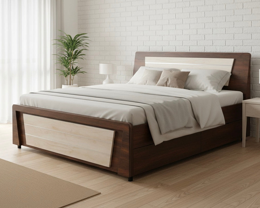 The Wooden Double Bed features a sturdy particle board and metal frame built for lasting stability and support. Its stylish curved headboard combines comfort with contemporary style, making it ideal for modern bedrooms. The refined finish complements any décor while providing a solid foundation for quality sleep. A practical investment in durable, stylish bedroom furniture.